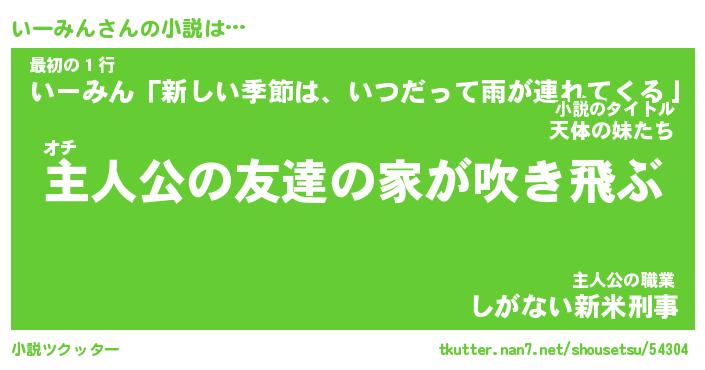 | 男性向けラノベタイトル風あだ名 | 『いーみんの憂鬱』 |