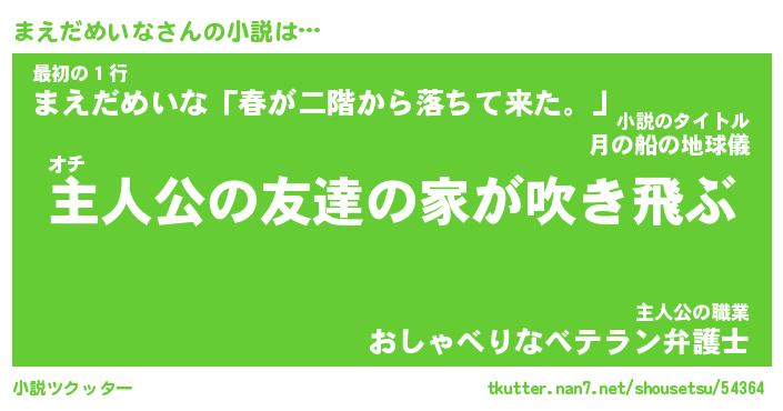 | 男性向けラノベタイトル風あだ名 | 『まえだめいなの憂鬱』 |