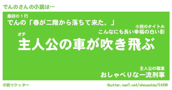 | 男性向けラノベタイトル風あだ名 | 『でんのの憂鬱』 |