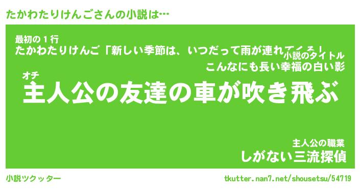 | 伝説のあだ名 | 『不死鳥の竜騎士たかわたりけんご』 |