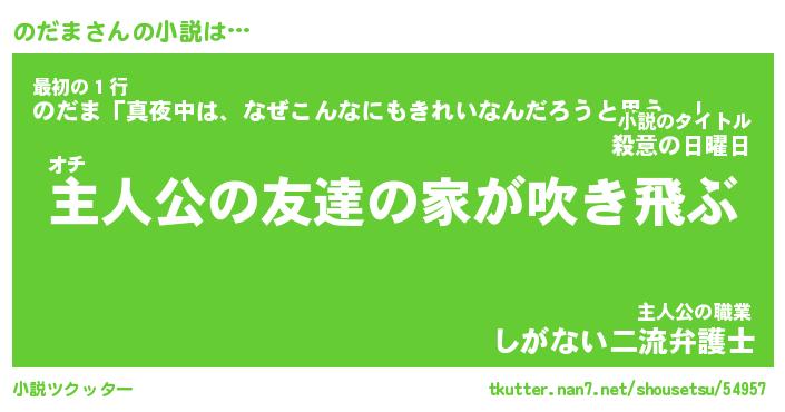 | 男性向けラノベタイトル風あだ名 | 『のだまの憂鬱』 |