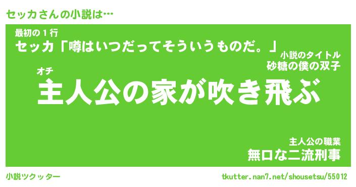 | 男性向けラノベタイトル風あだ名 | 『セッカの憂鬱』 |