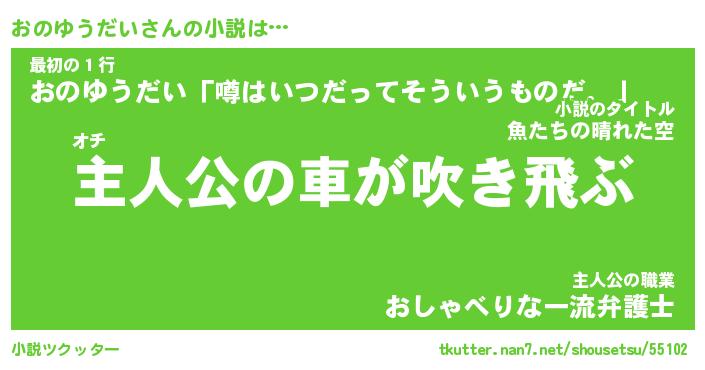 | 男性向けラノベタイトル風あだ名 | 『おのゆうだいの憂鬱』 |