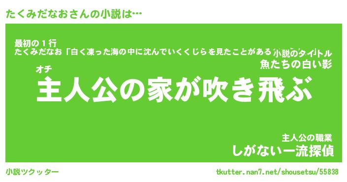 | 男性向けラノベタイトル風あだ名 | 『たくみだなおの憂鬱』 |