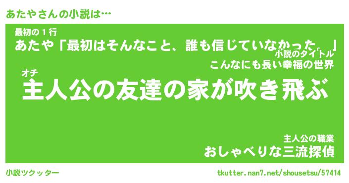 | 男性向けラノベタイトル風あだ名 | 『あたやの憂鬱』 |