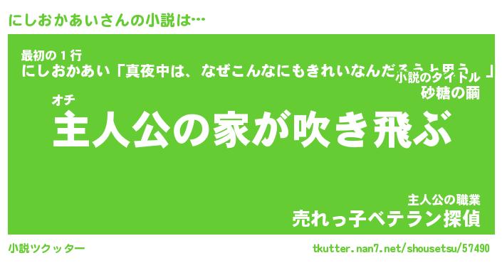 | 男性向けラノベタイトル風あだ名 | 『にしおかあいの憂鬱』 |