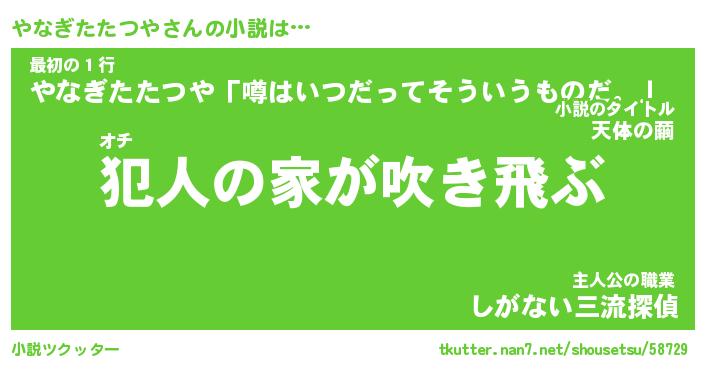 | 胡散臭い通販商品みたいなあだ名 | 『億万長者になれるブレスレット…その名も「やなぎたたつや」』 |