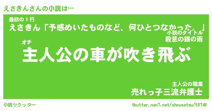 | 男性向けラノベタイトル風あだ名 | 『えさきんの憂鬱』 |