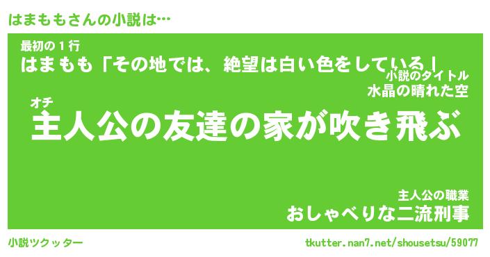 | 男性向けラノベタイトル風あだ名 | 『はまももの憂鬱』 |