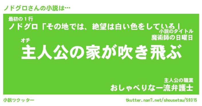| 男性向けラノベタイトル風あだ名 | 『ノドグロの憂鬱』 |