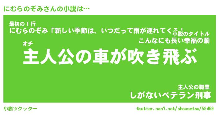 | 男性向けラノベタイトル風あだ名 | 『にむらのぞみの憂鬱』 |