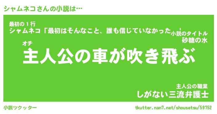 | 男性向けラノベタイトル風あだ名 | 『シャムネコの憂鬱』 |