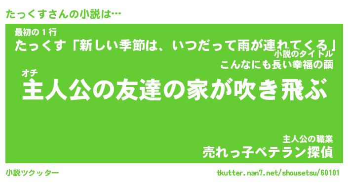 | 男性向けラノベタイトル風あだ名 | 『たっくすの憂鬱』 |