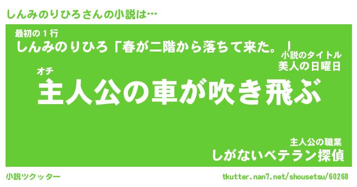 | 胡散臭い通販商品みたいなあだ名 | 『必ず成功する霊験あらたかなお札…その名も「しんみのりひろ」』 |
