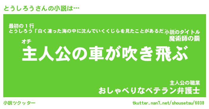 | 男性向けラノベタイトル風あだ名 | 『とうしろうの憂鬱』 |