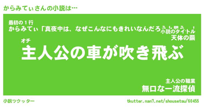 | 男性向けラノベタイトル風あだ名 | 『からみてぃの憂鬱』 |