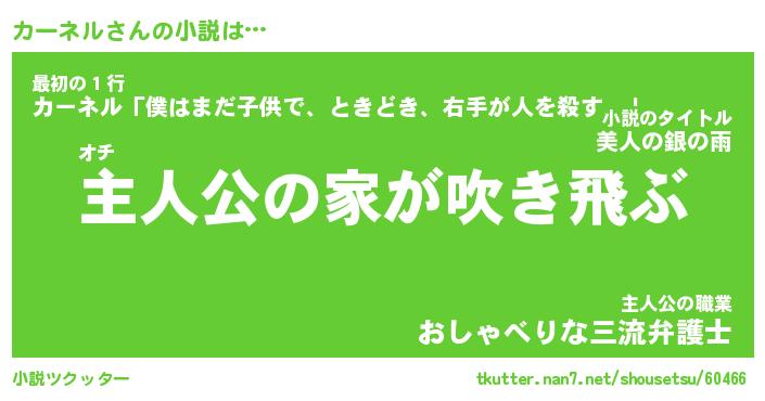 | 魚たちの銀の雨WW …「ケモノ」 | 10月27日 05:47 |