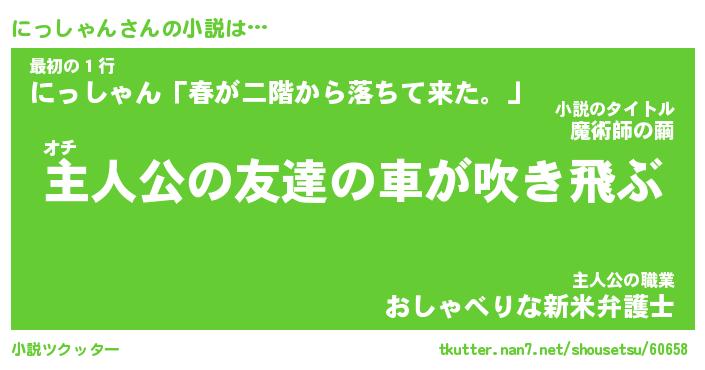 | 胡散臭い通販商品みたいなあだ名 | 『モテモテ間違いなし霊験あらたかなお札…その名も「にっしゃん」』 |