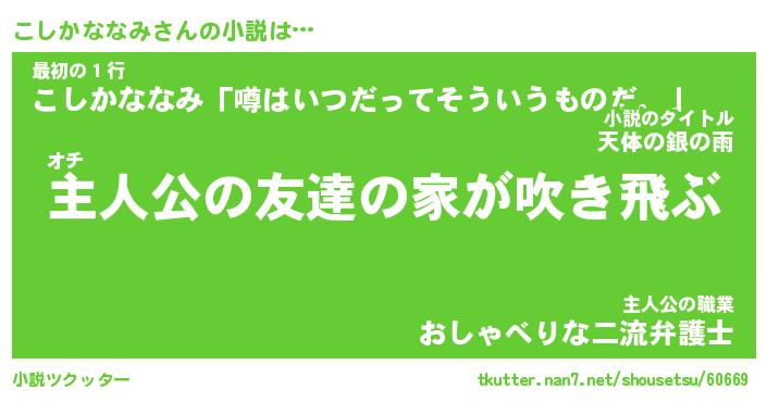 | 男性向けラノベタイトル風あだ名 | 『コシカナナミアートオンライン』 |