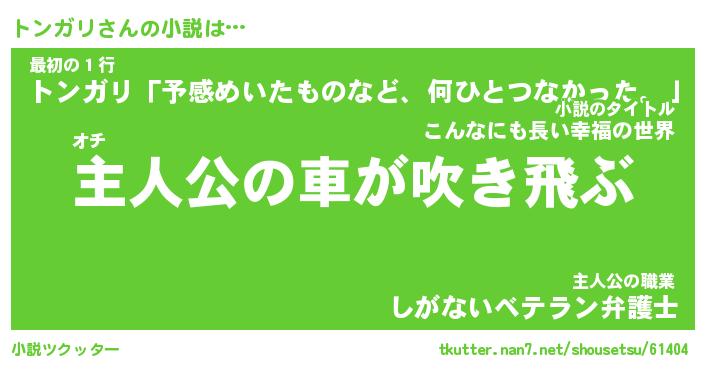 | 男性向けラノベタイトル風あだ名 | 『トンガリの憂鬱』 |