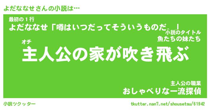 | 男性向けラノベタイトル風あだ名 | 『よだななせの憂鬱』 |