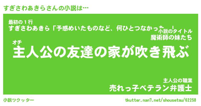 | 男性向けラノベタイトル風あだ名 | 『すぎさわあきらの憂鬱』 |
