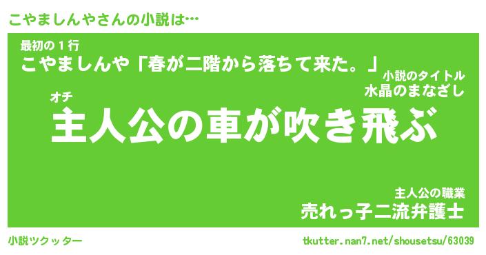 | 男性向けラノベタイトル風あだ名 | 『こやましんやの憂鬱』 |
