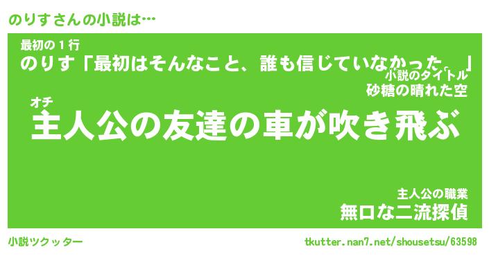 | 男性向けラノベタイトル風あだ名 | 『ノリスアートオンライン』 |