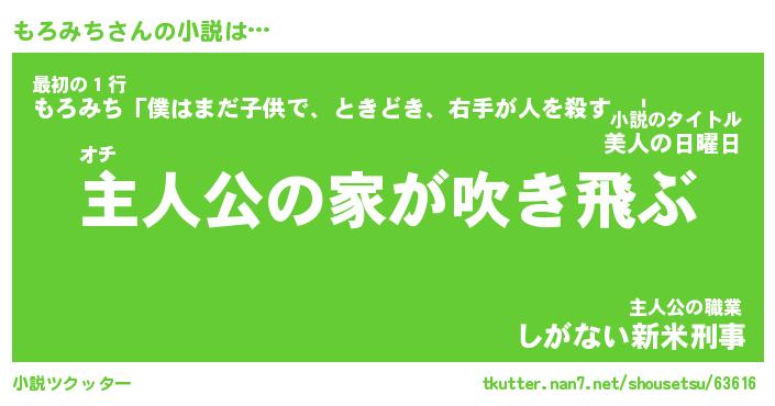 | 男性向けラノベタイトル風あだ名 | 『もろみちの憂鬱』 |