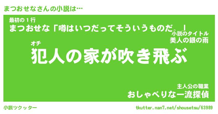 | 胡散臭い通販商品みたいなあだ名 | 『億万長者になれる霊験あらたかなお札…その名も「まつおせな」』 |