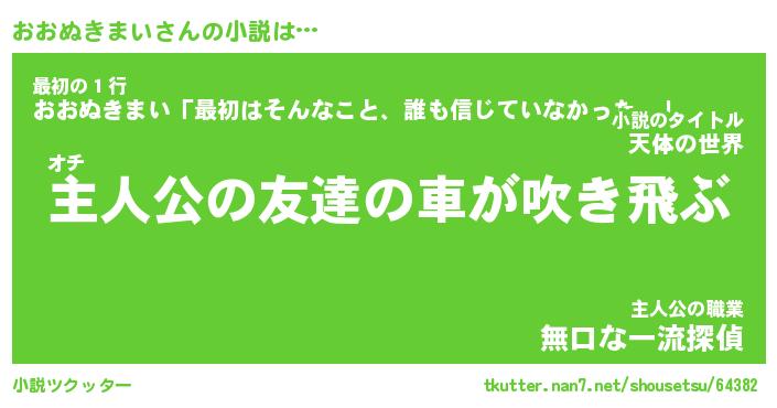 | ツイッター | おおぬきまいさんのツイッターID『dendenmushi_man』 |