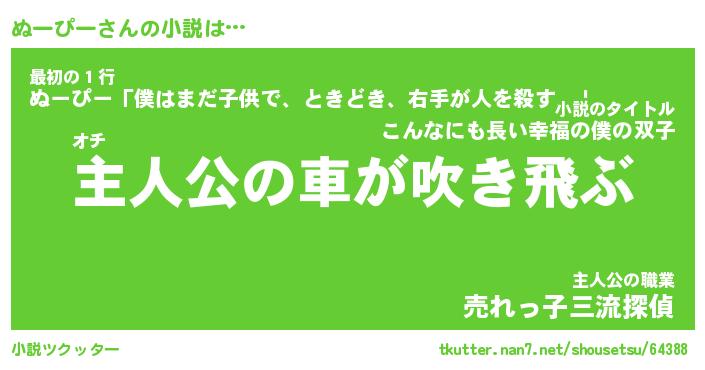 | 男性向けラノベタイトル風あだ名 | 『ぬーぴーの憂鬱』 |