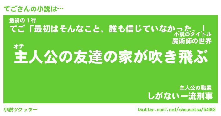 | 男性向けラノベタイトル風あだ名 | 『テゴアートオンライン』 |