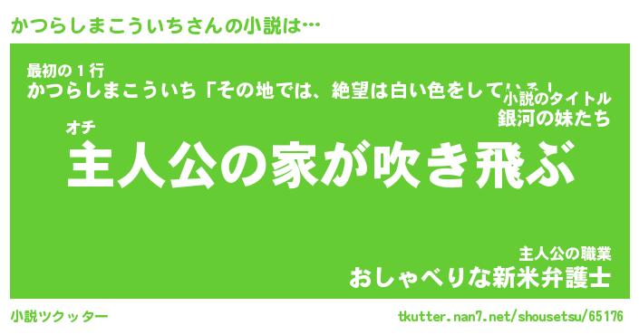 | 男性向けラノベタイトル風あだ名 | 『かつらしまこういちの憂鬱』 |