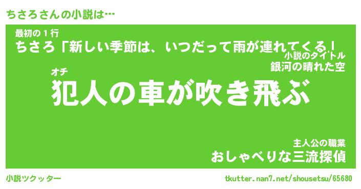 | 魚たちの銀の雨WW …「ケモノ」 | 10月27日 05:47 |