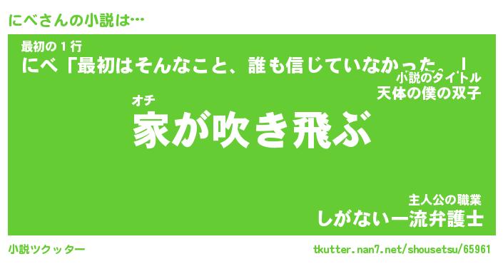 | 男性向けラノベタイトル風あだ名 | 『にべの憂鬱』 |