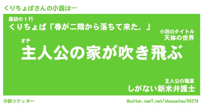 | 男性向けラノベタイトル風あだ名 | 『くりちょぱの憂鬱』 |