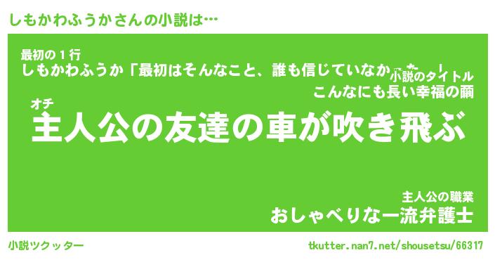 | 女子向けラノベタイトル風あだ名 | 『しもかわふうか姫と円卓の騎士』 |