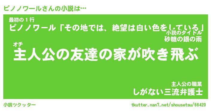 | 男性向けラノベタイトル風あだ名 | 『ピノノワールアートオンライン』 |