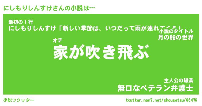 | 男性向けラノベタイトル風あだ名 | 『にしもりしんすけの憂鬱』 |