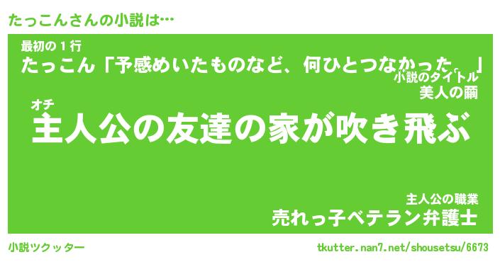 | 男性向けラノベタイトル風あだ名 | 『たっこんの憂鬱』 |