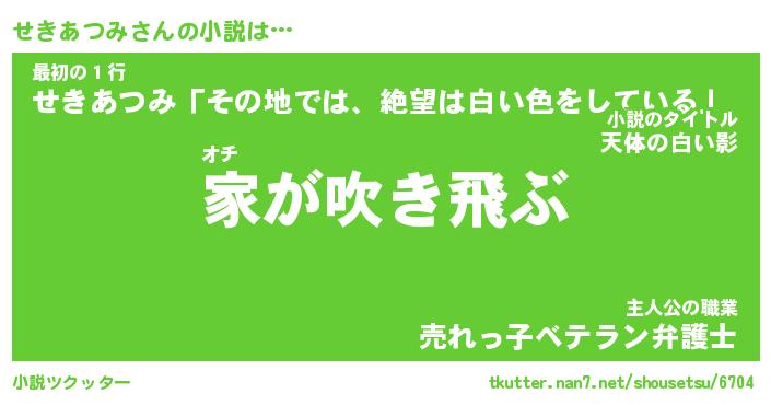 | 男性向けラノベタイトル風あだ名 | 『せきあつみの憂鬱』 |