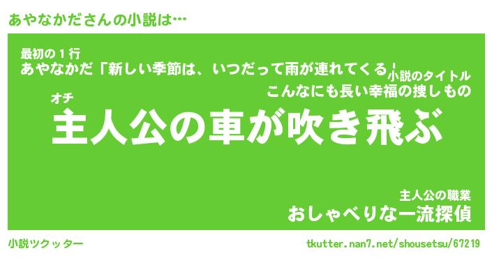 | 男性向けラノベタイトル風あだ名 | 『あやなかだの憂鬱』 |