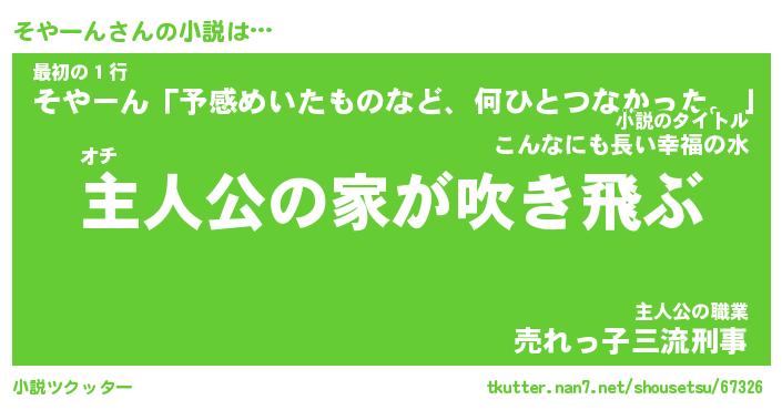 | 男性向けラノベタイトル風あだ名 | 『そやーんの憂鬱』 |