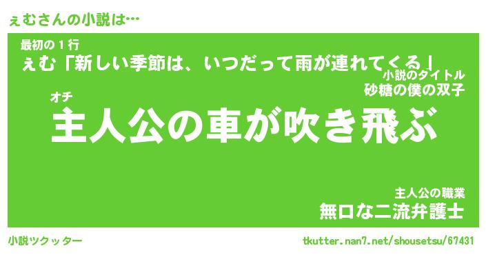 | 胡散臭い通販商品みたいなあだ名 | 『モテモテ間違いなしブレスレット…その名も「ぇむ」』 |