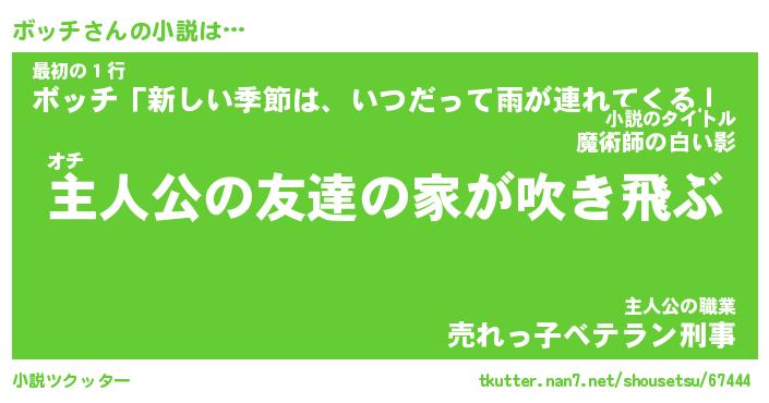 | 魚たちの銀の雨WW …「ケモノ」 | 10月27日 05:47 |