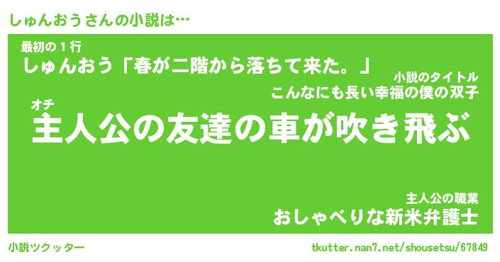 | 男性向けラノベタイトル風あだ名 | 『シュンオウアートオンライン』 |