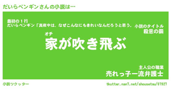 | 男性向けラノベタイトル風あだ名 | 『だいらペンギンの憂鬱』 |