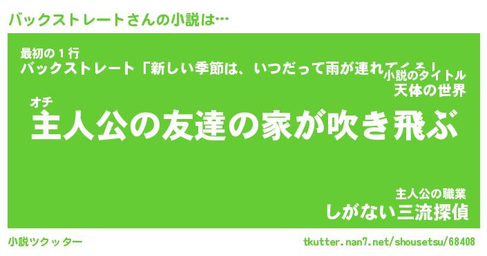 | 胡散臭い通販商品みたいなあだ名 | 『モテモテ間違いなしブレスレット…その名も「バックストレート」』 |
