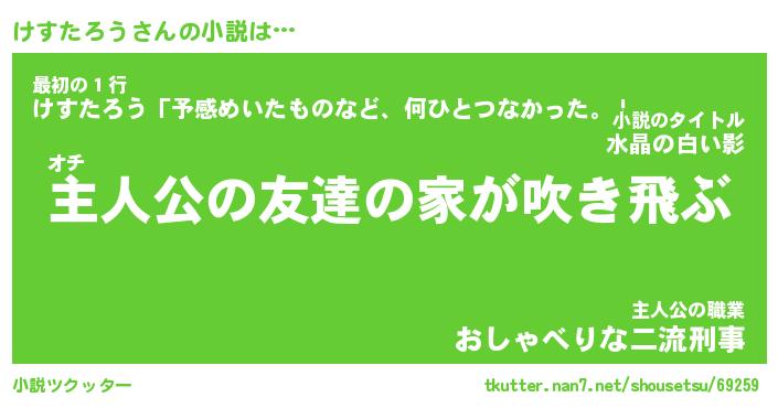 | 男性向けラノベタイトル風あだ名 | 『けすたろうの憂鬱』 |